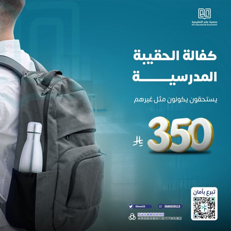 في ظل بداية كل عام دراسي، يواجه العديد من الطلاب من الأسر ذات الدخل المحدود تحديات كبيرة في تأمين المستلزمات الدراسية الأساسية. وانطلاقًا من دورنا في دعم التعليم وتعزيز التكافل المجتمعي، تطلق جمعية (عِلم التعليمية) مشروع “الحقيبة المدرسية” لتوفير بيئة تعليمية عادلة ومحفزة للطلاب الأشد احتياجًا.